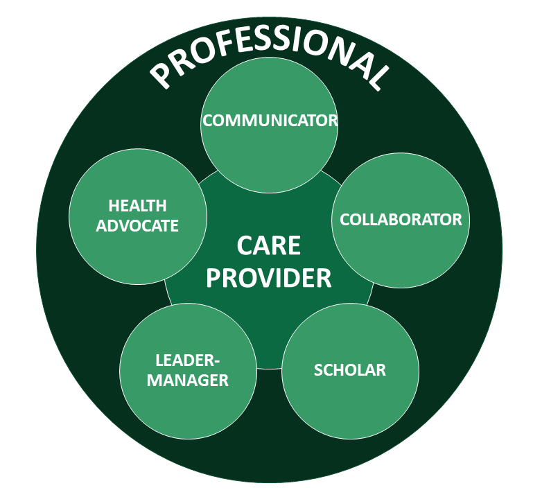 It is expected that students skillfully integrate elements of the Communicator, Collaborator, Scholar, Leader-Manager, and Health Advocate Educational Outcomes into their role as a Care Provider. The Professional role is the overarching ethos of the discipline of pharmacy and should be consistently and globally demonstrated by students.