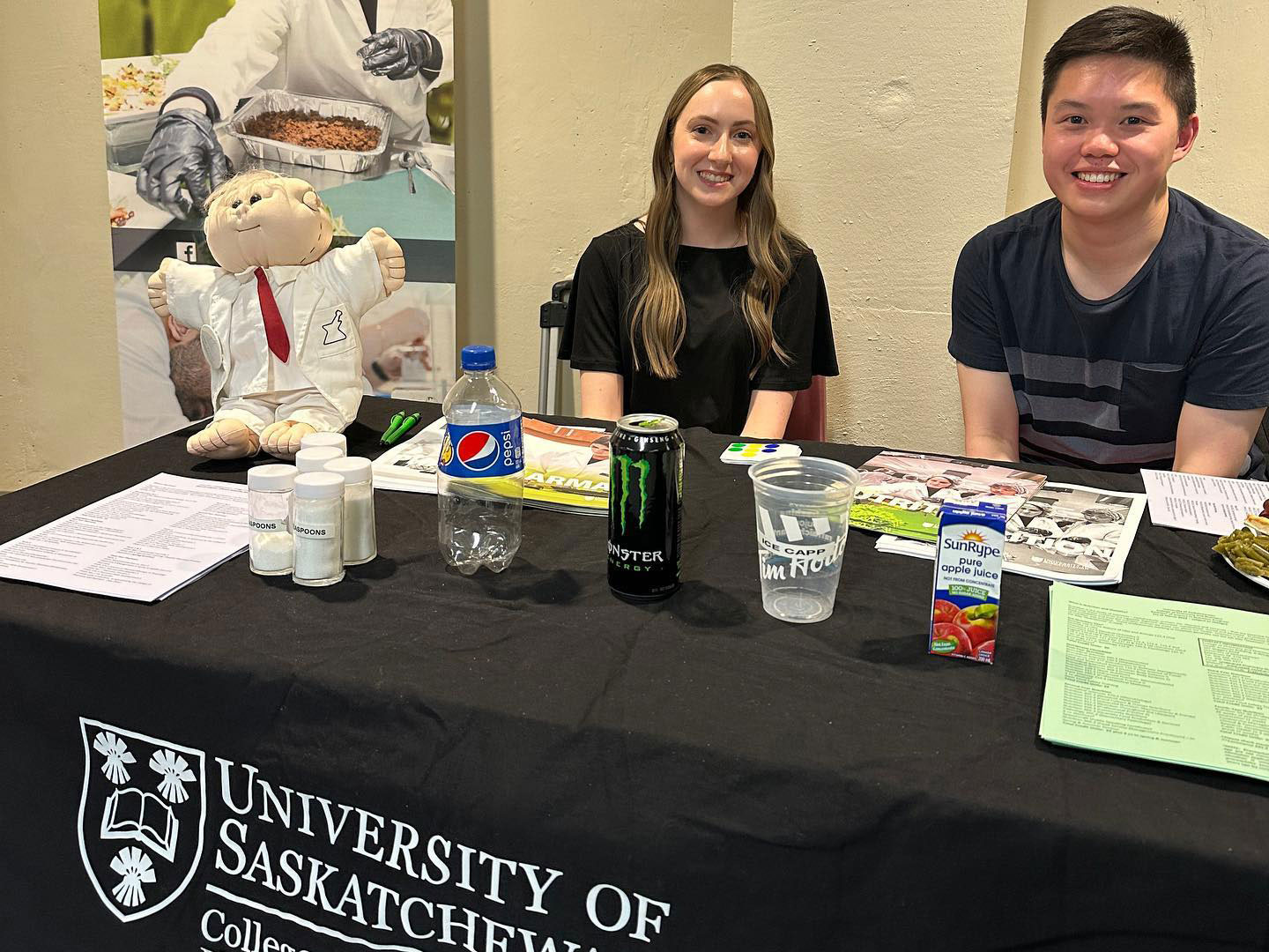 Indigenous Student Experience Day is an event for Métis, First Nations, and Inuit students in high school and their supporters to get to know the University of Saskatchewan campus and community. Volunteering for College of Pharmacy and Nutrition, University of Saskatchewan, was Ryan Chan and Ashley Burghall, both 3rd year Pharmacy students.