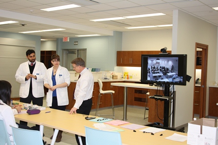 On February 25, 2014, 2nd year U of S pharmacy students participated in a very unique experience – they attended class with pharmacy students in Qatar University without being in the same room. Professors Jeff Taylor (U of S) and Kyle Wilby (Qatar University) teamed up to co-deliver a practice session on smoking cessation for students in Saskatoon and Doha. This is the first pharmacy encounter between the two universities, with the Saskatoon session held in the newly opened Apotex Pharmacy Professional Practice Centre (Health Sciences Building) and the Doha session held in the College of Pharmacy on the Women’s campus at Qatar University.