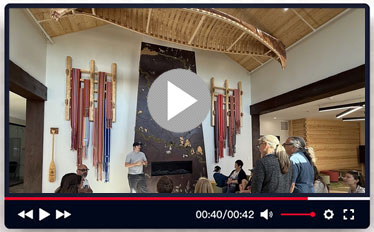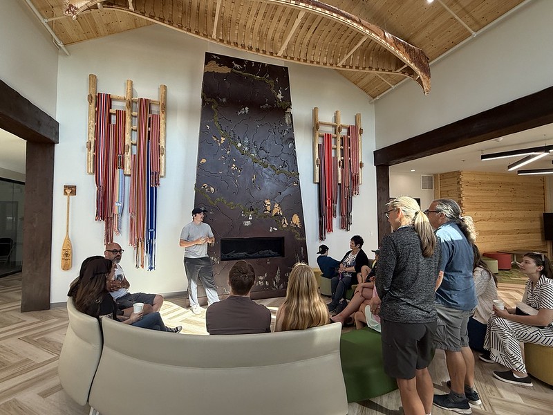 Midday, we gathered at Dumont Lodge to enjoy a traditional Indigenous and Métis lunch prepared by Marie’s Catering. The menu featured hearty bison stew and bannock, served with garden greens and a Saskatoon berry balsamic dressing.